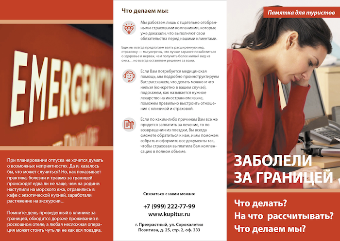Буклет учит туриста доверять вам и доказывает, что вы решаете проблемы.