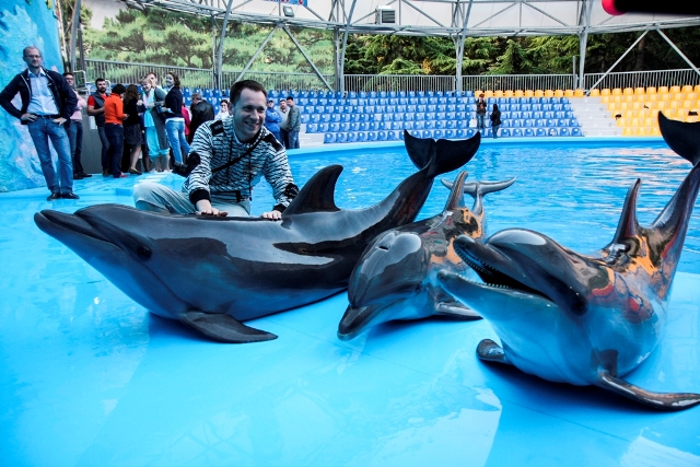 В Алуште нас встретил местный мэр Станислав Колот. В ходе скоротечной пресс-конференции у стен дельфинария он сообщил, что Большая Алушта одновременно может принять 24 тыс. туристов, с учётом частого сектора – вдвое больше. В прошлом году в городе отдохнули 300 тыс. человек (25% от всех гостей Алуштинского региона). Общий турпоток в регион составил около миллиона гостей.