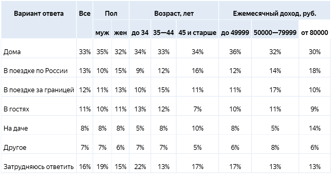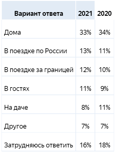 Вопрос: «Если бы не пандемия коронавируса, где бы вы провели бОльшую часть новогодних каникул?»