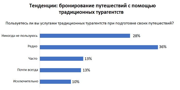 Итак, главное — большинство путешественников с высоким уровнем дохода в США редко или никогда не использовали традиционных туристические агентства для бронирования своих поездок.