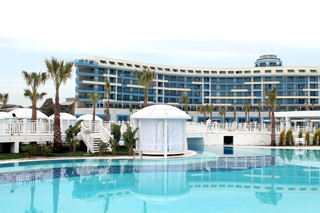ТОП менеджеры отеля обещают, что к середине мая будет работать абсолютно все. В том числе два просторных амфитеатра, аквапарк на 10 горок, пять хамамов и пять саун (впервые в Анталии здесь откроют VIP хамам), 6 а-ля-карт ресторанов и многочисленные бары, а также превосходный фитнес центр с самыми современными тренажерами и два ночных клуба. К слову, этот отель работает по системе Ultra all inclusive, в ресторанах и барах подают высококачественный алкоголь мировых марок до 21 года выдержки.