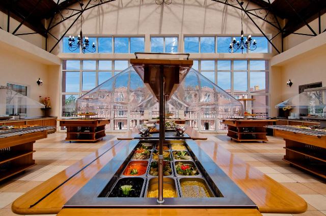3-разовое, «шведский стол» в основном ресторане + алкогольные напитки (пиво-вино) Промежуточное питание: ранний кофе ресторан «Mon Plaisir» узбекской кухни, кафе «Али-Баба» (блюда восточной кухни), пиццерия «El Patio» и блинная «Merci Beacoup», фруктовая лавка «Fruiterie», барбекю-бар «Cascade» и коктейль-бар. Станция питания на пляже (корн-дог, поп-корн, квас, газированные напитки, питьевая вода) |