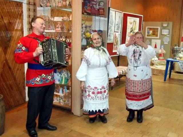 После дворца нас пригласили в Центр культуры и ремесел. Переступив порог русской избы, гости оказались в ином уютном мире. Рядом с русской печкой, кухонной утварью, окруженные гостеприимными хозяевами, встретившими нас русскими частушками и плясками, мы с удовольствием играли в старинные русские забавы, слушали игру на окалине – глиняном духовом инструменте, который здесь же и изготавливался умельцами.