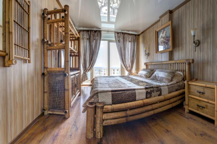 10. В этих номерах в Севастополе идеально отдыхать семьей с детьми, каждый день ужинать, расположившись за столиками в зеленом дворике в тени фруктовых деревьев и винограда. Готовить пищу можно на оборудованной кухне и пользоваться мангалом. Разрешено приезжать с домашними животными.