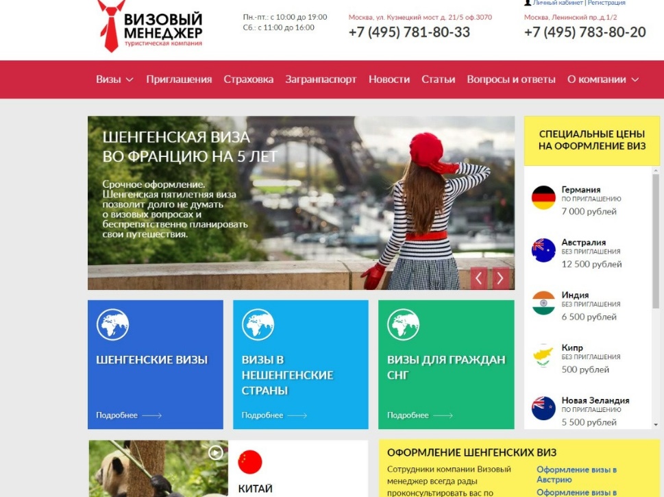 Для справки: «Визовый Менеджер» — это успешная, стремительно развивающаяся компания, специализирующаяся на оформлении виз во все страны мира. Главной задачей, является оказание профессиональной помощи в вопросах связанных с оформлением виз. В своей работе, компания стремится не только к качественному и быстрому выполнению своих профессиональных обязанностей, но и к освоению и внедрению новых, современных и удобных для клиента способов взаимодействия.
