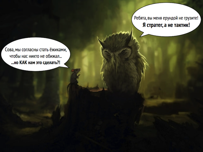 Стратегия — это хорошо, но чтобы всё это не походило на анекдот про сову и мышей («Откуда я знаю, как вам стать ёжиками?! Я стратег, а не тактик!»), давайте обсудим конкретные способы её реализации.