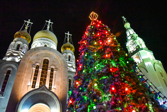 Главное украшение на центральной площади города — Новогодняя елка, состоящая из 4458 элементов. Ее высота составляет 31 метр, а общая длина световой гирлянды с 3D эффектами — 8500 метров. Управление реализовано на новейших микрочипах, это позволяет использовать ее, как огромный видеоэкран с разрешением 85000 пикселей. Тумба с основанием — это тоже декоративный