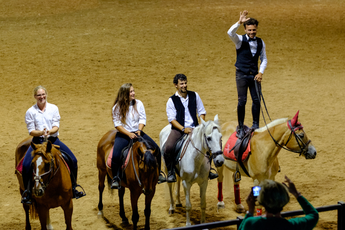 В составе комплекса открытый плац и два прогулочных поля, а также большой крытый манеж с трибунами на 1200 зрителей. Вечером здесь проходят красочные представления с участием лошадей.