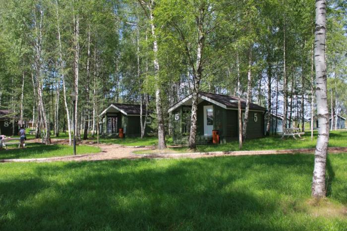 Новый современный кемпинг на территории «Завидово» — это 18 комфортабельных домиков, на 4 человек каждый. Они расположены в березовой роще на берегу ручья и озера. Домики построены из качественного бруса по специальной технологии, и подходят для круглогодичного отдыха. Теплые душевые и санузлы — в отдельно стоящем здании.