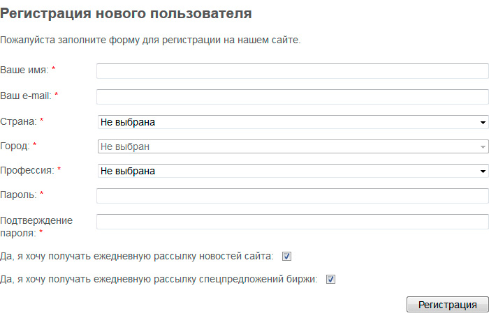 2. Форма регистрации очень простая и выглядит так: