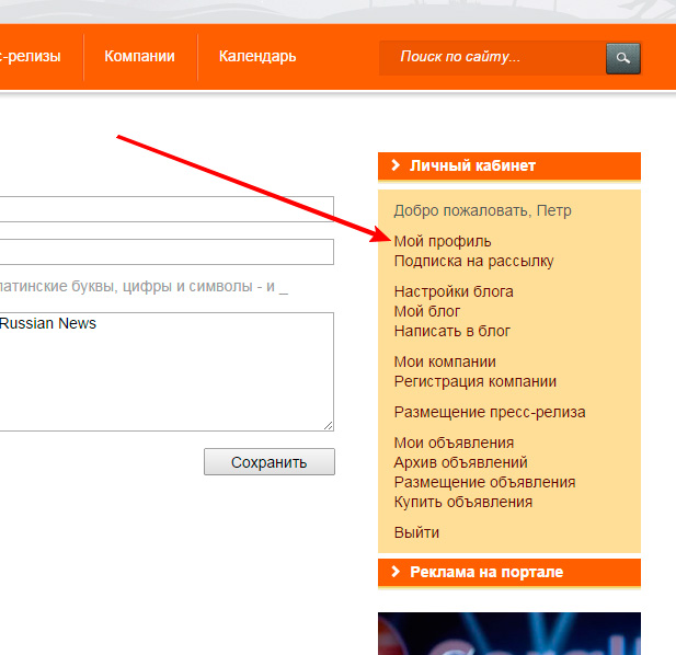 Для этого опять же в правом меню надо перейти по ссылке Мой профиль.