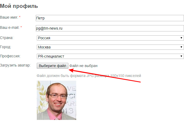 Файл может и не быть размером строго 150x150, но должен быть квадратным. Если вдруг не получается загрузить или вырезать, присылайте фото на info@trn-news.ru, мы поможем.