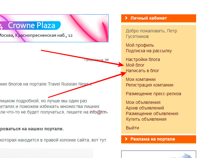 Краткая инструкция по ведению блогов на портале Travel Russian News с картинками.