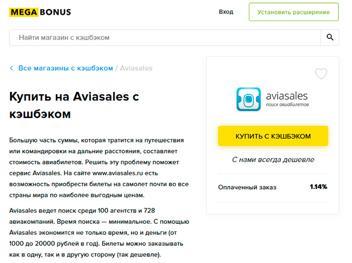 Значительная часть средств, затрачиваемых для путешествий на дальние расстояния, уходит на покупку авиабилетов. Самолеты — это комфортный, но дорогой вид транспорта, позволяющий экономить время. В ряде случаев обойтись без него просто невозможно. Однако, можно найти пути для экономии денег. Например, воспользоваться сервисом кэшбэк. С его помощью часть потраченных средств можно получить обратно. Сервис Megabonus предоставляет выгодный кэшбэк на Авиасейлс.