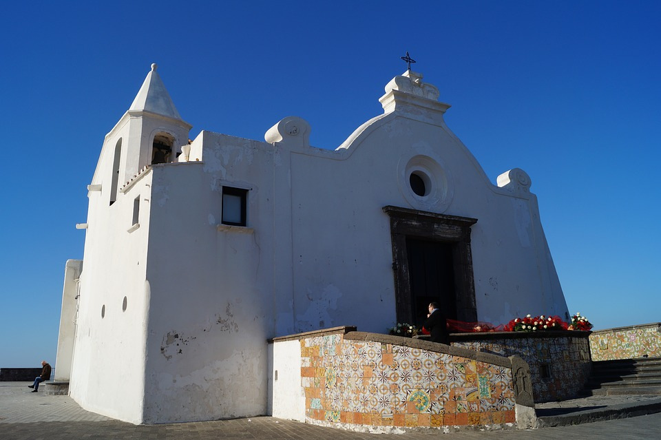 На территории есть церкви, арочные дворики, увитые цветами, старинное кладбище монахинь, террасы с красивым видом на Искью, Капри и Неаполь, милые скверики и даже панорамное кафе. А внутри замка, относящегося к V веку до н.э., можно увидеть картины современных художников.