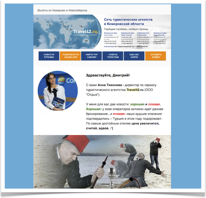Плюс у нас ещё была база из 2000 контактов тех, кто обращался к нам в турагентство, но по