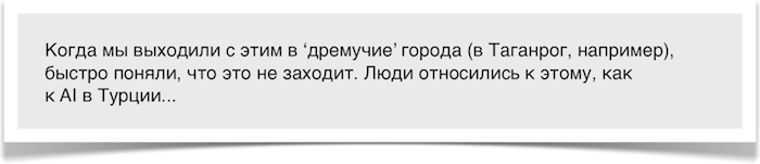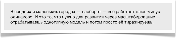 …в общем, я быстро понял, что хоть мы и тиражируем наш формат, надо его немного подстраивать под рынок конкретного города.