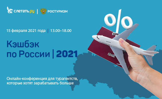 В феврале стартует третий этап программы по стимулированию доступных внутренних туристических поездок. Поэтому 15 февраля 2021 года с 13.00 до 18.00 на платформе Слетать.ру состоится онлайн-конференция «Кэшбэк по России 2021» при официальной поддержке Ростуризма.
