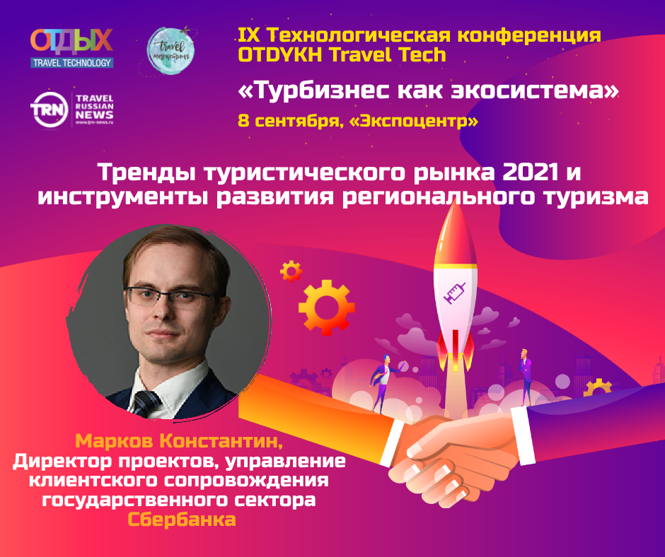 8 сентября на конференции для профессионалов турбизнеса — OTDYKH Travel Technology — выступит директор по работе с федеральными проектами Сбербанка Константин Марков. с докладом «Туристический бизнес как экосистема — тренды цифровизации».