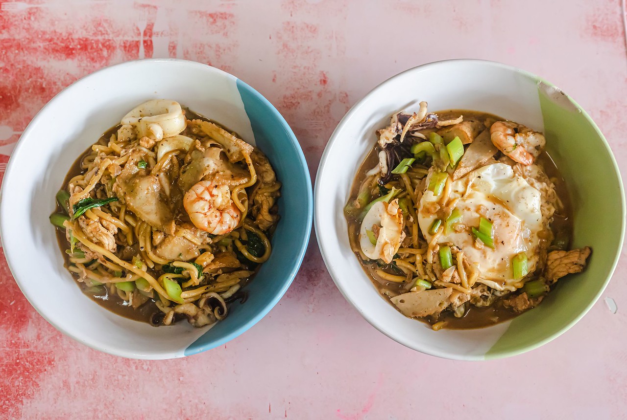 Жареная лапша, которая подается в горячем виде. Ее едят со свининой, приготовленной на гриле, кольцами кальмара и листьями китайской капусты вместе с соусом из свиного бульона, белого перца и соевого соуса. Сверху блюдо поливают жидким куриным желтком для придания лапше глянцевой текстуры.