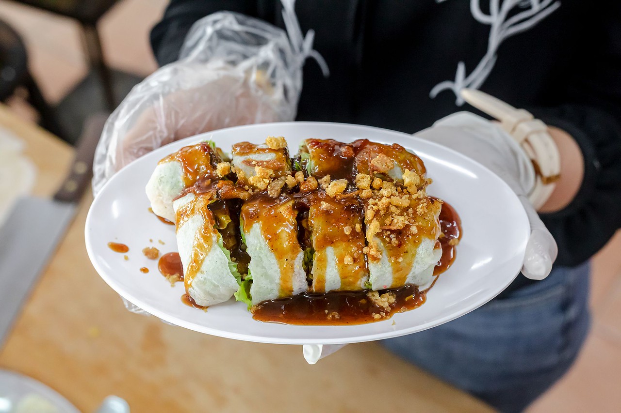Рулетики из блинчиков с разнообразными начинками: от тофу и хрустящих ростков фасоли до омлета и крабового мяса.