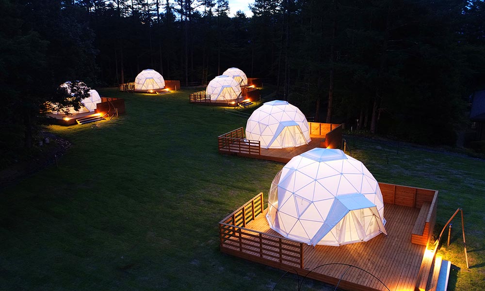 Одним из таких направлений можно считать строительство глэмпингов. По сути, это сокращение термина «гламурные кемпинги». Но если кемпинг — это просто палаточный городок с минимумом удобств, то глемпинг — это своеобразный отель на природе. Жилые постройки могут быть представлены как в форме шатра или сферы, так и как домики в скандинавском стиле. Формат глемпинга является более чем востребованным, так как зачастую людей останавливает как раз отсутствие комфорта в отдыхе на природе.
