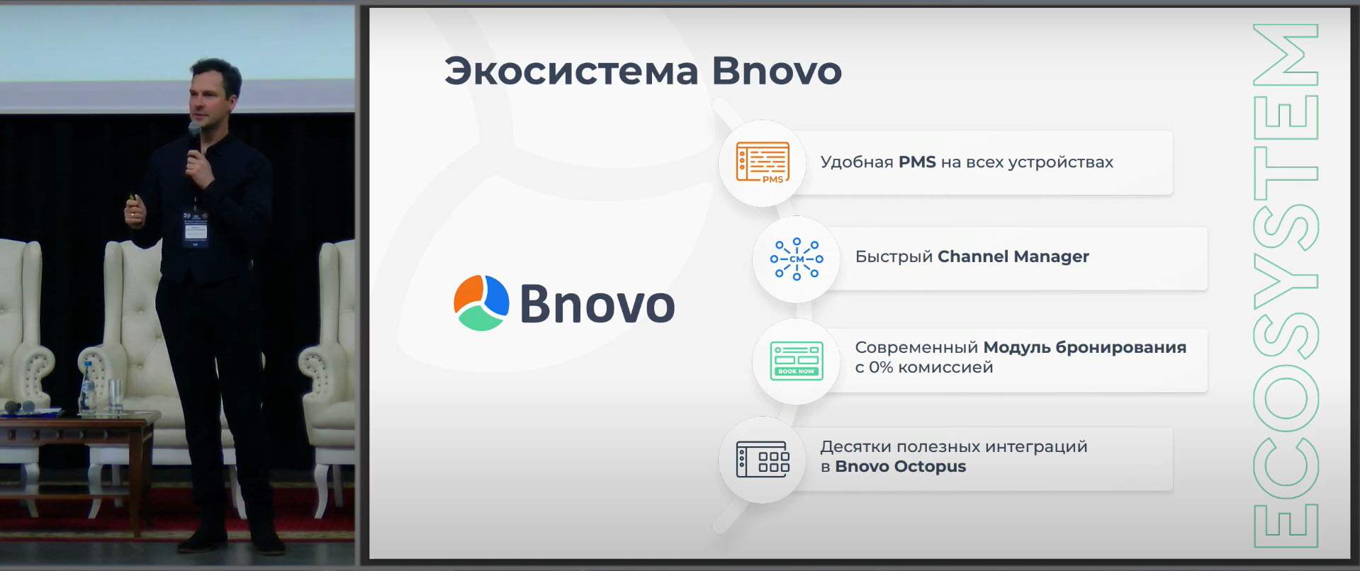 «Хочу сделать акцент на взаимодействии между гостиничным бизнесом и разработчиками, как Bnovo. Это всегда совместное партнерство. Мы рекомендуем отходить от субъективных мнений и полагаться на точную аналитику и прогноз, которые уже сегодня обеспечивают наши
