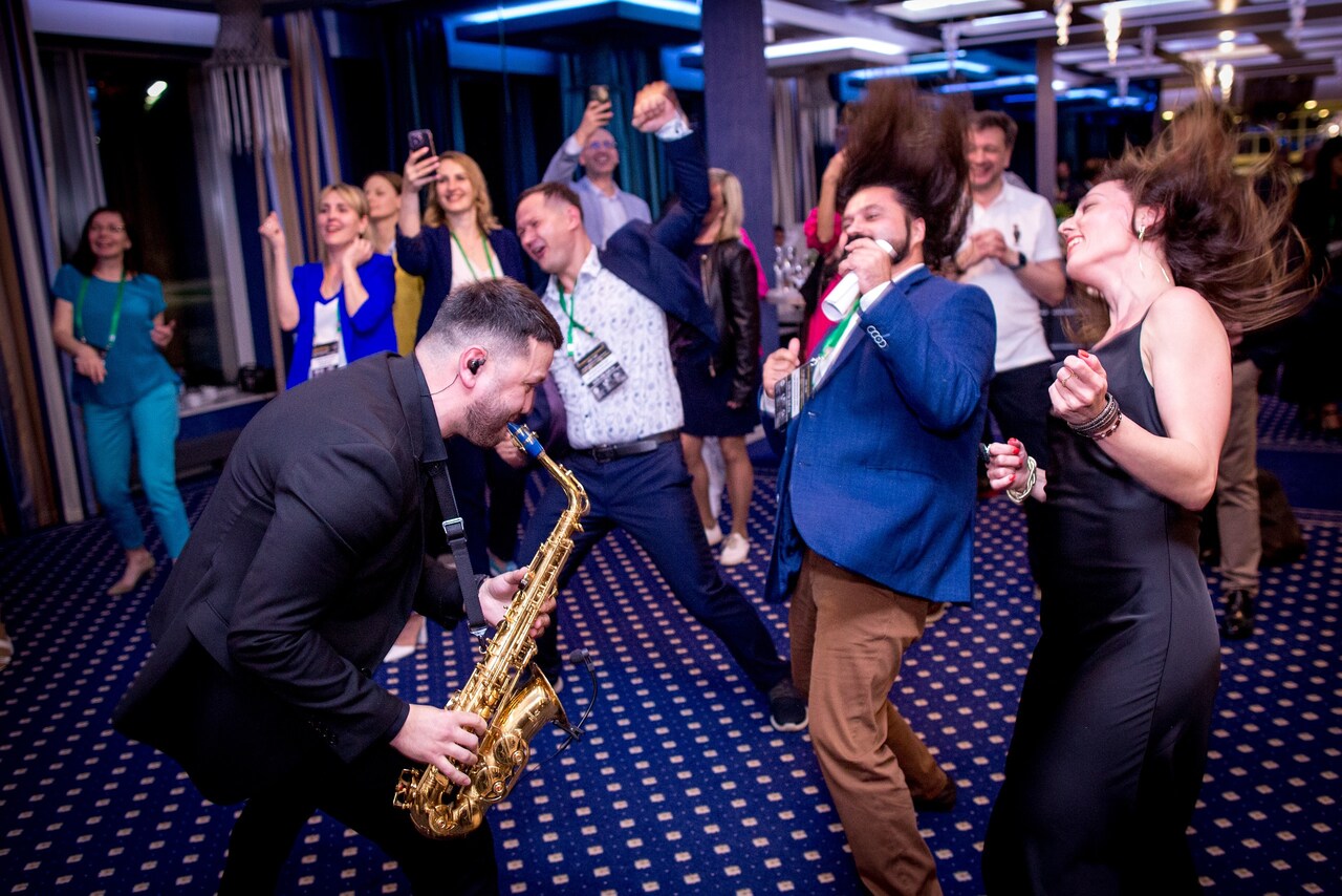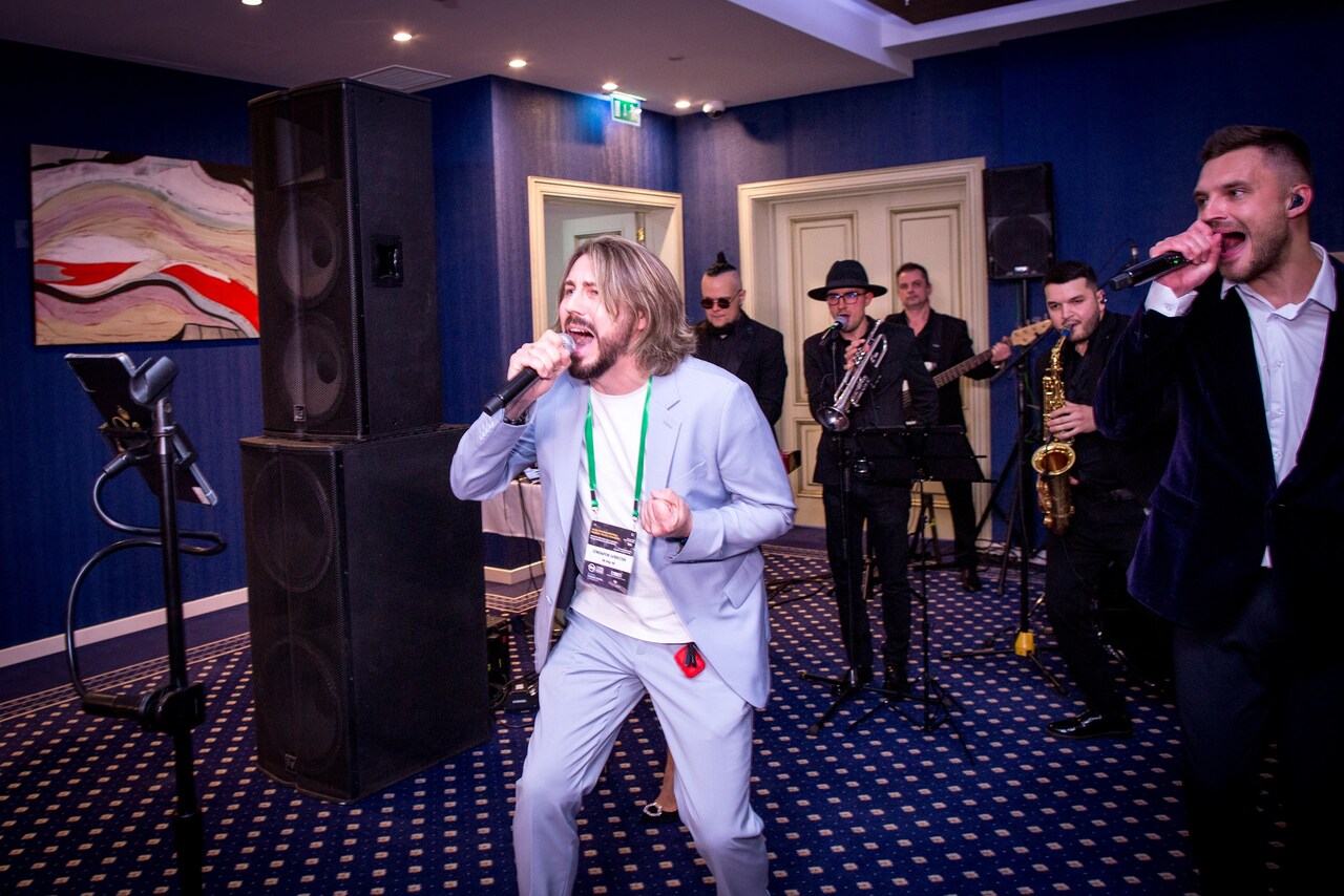 Но и на этом сюрпризы не закончились, организаторы подготовили необычный музыкальный эксперимент для коллег — гостям предлагалось выступить на сцене вместе с