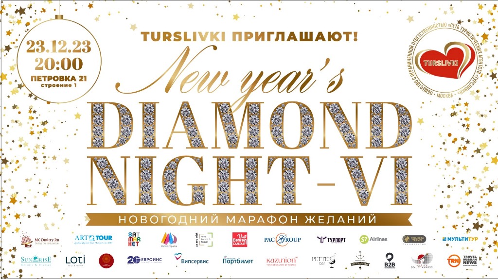 Управляющий офис Сети Туристических Агентств «ТУРСЛИВКИ» поздравляет Всех коллег с приближающимися новогодними праздниками и приглашает на самое ожидаемое событие уходящего года, традиционный предновогодний банкет: «NEW YEAR’S DIAMOND