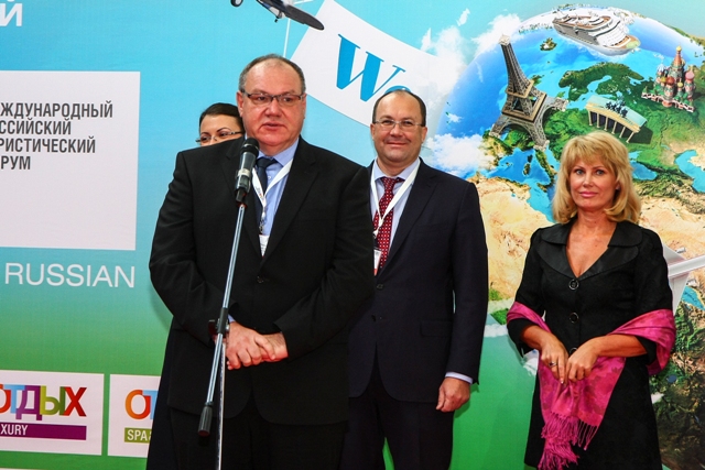 На церемонии открытия врио руководителя Ростуризма Олег Сафонов зачитал приветствие министра культуры РФ Владимира Мединского, в котором тот пожелал успеха всем участникам выставки, проходящей в непростое для российского туррынка время.