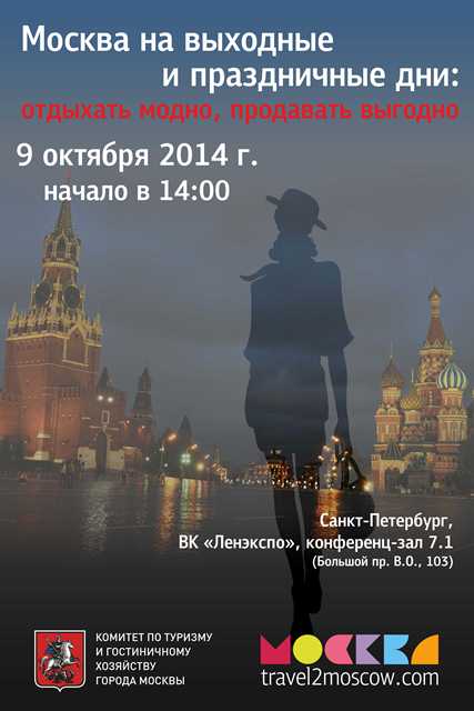 В четверг, 9 октября 2014 года Комитет по туризму и гостиничному хозяйству Москвы представит в Санкт-Петербурге «новую городскую туристическую коллекцию», где Москва, в том числе, позиционируется как прекрасное направление для путешествий всей семьей.