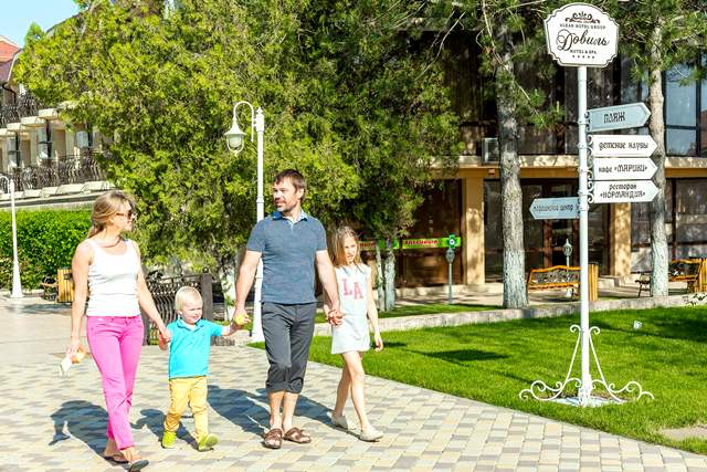 Для досуга детей на территории отелей есть бассейны с аква-горками, детские игровые площадки, детские клубы (в «Довиле» их 3: для детей 2-5 лет, 6-9 лет, 10-14 лет). Есть прокат спортинвентаря. Особое внимание уделяется анимационным мероприятиям, которых проходит более 20 в день. Это и всевозможные мастер-классы, и развлекательные шоу-программы с приглашенными артистами, а также спортивнее соревнования и игры на свежем воздухе.