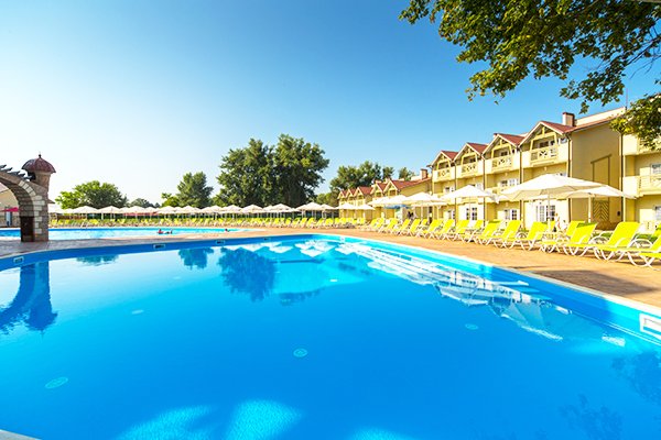«Довиль Отель & SPA» 5* и «Ривьера-клуб Отель & SPA» 4*. Преимущества – система «все включено»; номера, подходящие для семейного размещения; наличие проката детского инвентаря и детского меню; огромный выбор развлечений для детей (подогреваемые бассейны, детские клубы, игровые зоны и детские площадки, анимация в течении всего дня; оборудованный пляж.