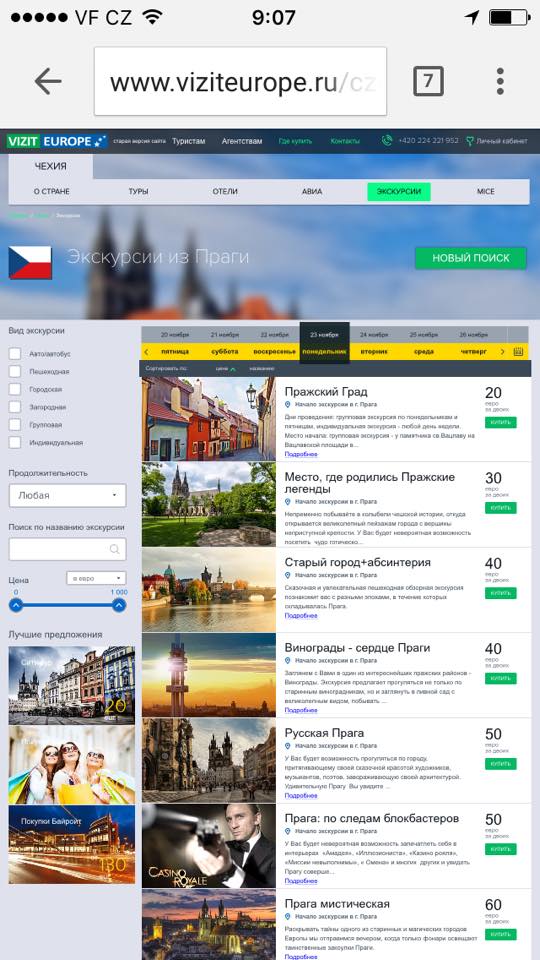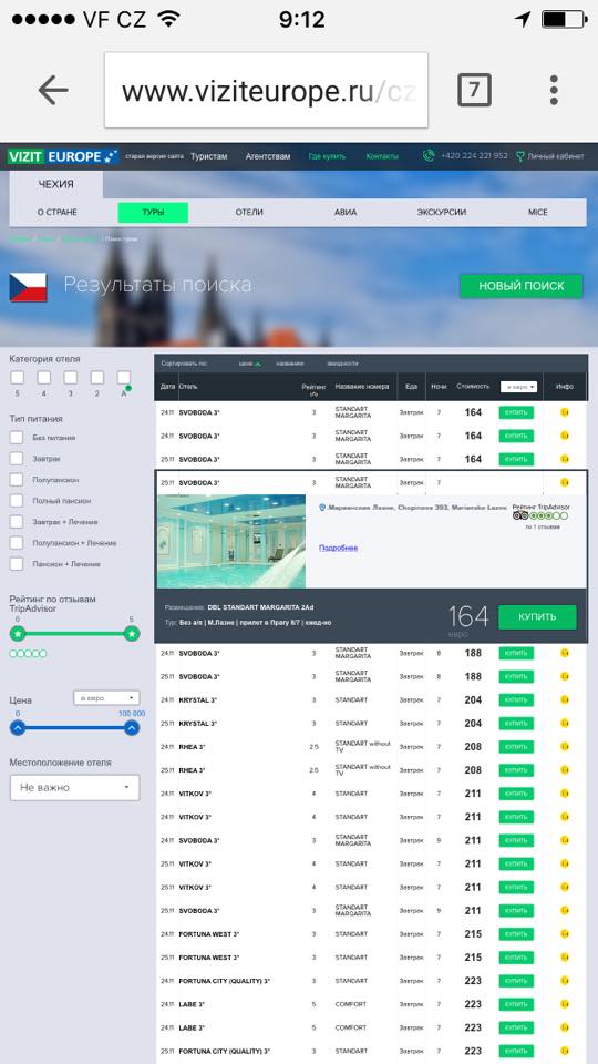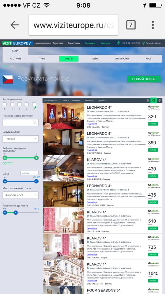 - расширенные фильтры по подбору отелей в городах приема (удаленность от основных городских достопримечательностей, рейтинг на основе отзывов от TripAdvisor, цена)