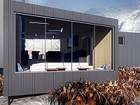 Уникальным лодж делает остекленный фасад с панорамным видом на окружающий горный пейзаж. Коттеджи облицованы листами цинкового проката, который великолепно защищает от ветра и снега и требует минимального технического обслуживания. При этом в лодже нет основного источника электроэнергии, потому освещение обеспечивает солнечная панель, а отапливаются домики при помощи дров, что создает невероятно уютную и дружескую атмосферу. Кроме того, туристы могут нежиться в сауне, которая расположена прямо над бурным горным потоком.