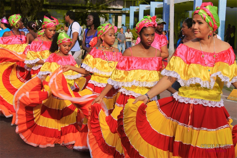 Главный герой новогоднего карнавала в Колумбии — Старый год. Он разгуливает в толпе на высоких ходулях и рассказывает детям смешные истории.