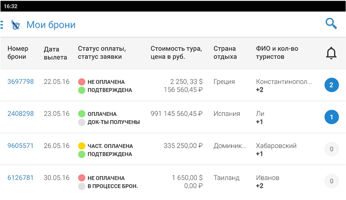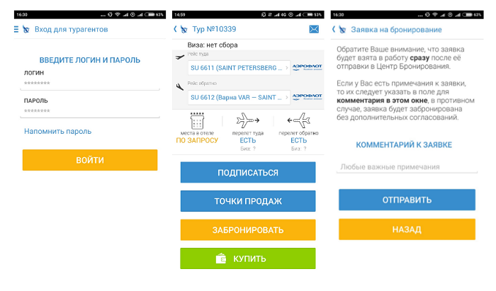 В мобильном приложении с поддержкой Центра бронирования турагенты оформляют заявки на бронирование туров от всех