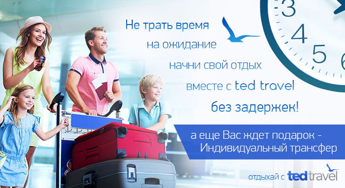 А на гостеприимной земле Турции поможет сэкономить время индивидуальный трансфер на комфортных минивэнах Mersedes класса «люкс», который Ted Travel предоставляет в подарок до конца лета! В акции участвуют 36 отелей 5* в Белеке.