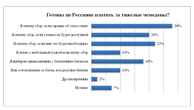 Согласно исследованию, более четверти путешественников из России (28%) оплатят дополнительный сбор на перевоз багажа, если будут знать об этом заранее. Еще 20% не станут переживать насчет подобных расходов, если сбор окажется приемлемым, а 22% туристов готовы к расходам в случае необходимости.