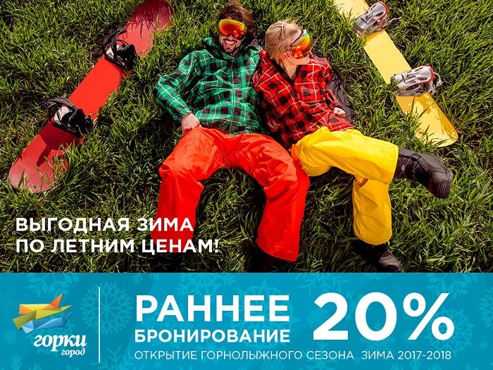 Этим летом всесезонный и горный курорт «Горки Город» запустил актуальный тариф для любителей зимнего отдыха — раннее бронирование отелей на горнолыжный сезон 2017/18.