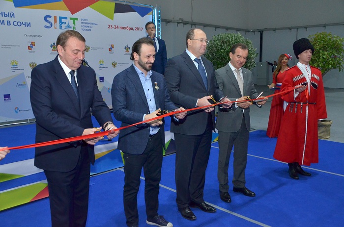 23 ноября в торжественной церемонии открытия форума приняли участие Глава Ростуризма Олег Сафонов, Губернатор Краснодарского края Вениамин Кондратьев и Глава