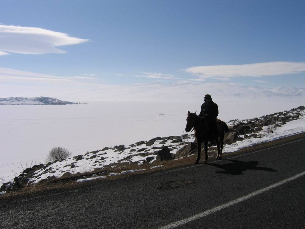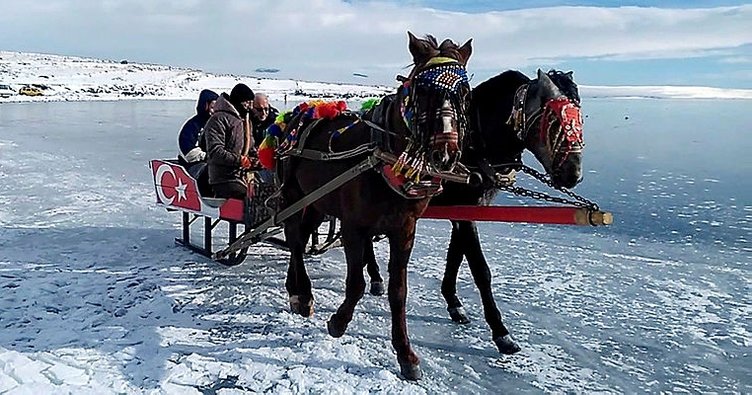 На замерзшей поверхности пресного озера Чилдыр, расположенного в турецкой провинции Ардахан, в зимний сезон запустили конные туры, сообщает Sabah.