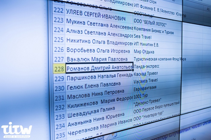 В опросе приняли участие более 300 агентств по всей России. Победитель был выбран из списка респондентов путём случайной генерации чисел в присутствии посетителей выставки. Счастливым обладателем тура стал Дмитрий Романов из агентства