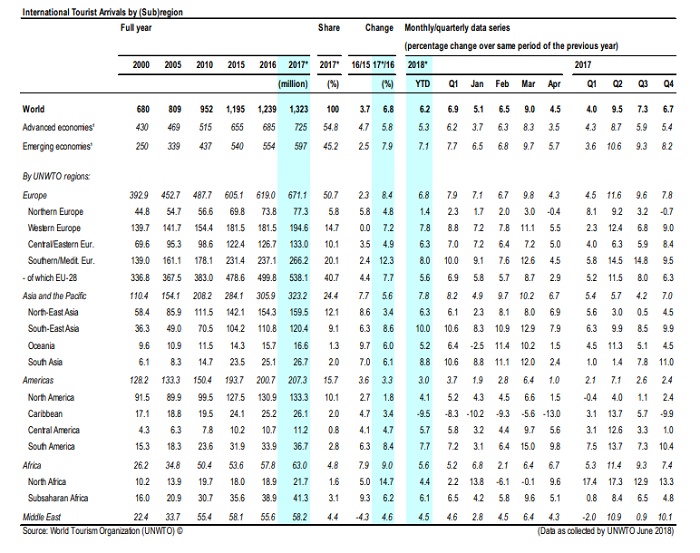Этот показатель не только — продолжение тенденции к росту, оставшейся «в наследство» от 2017 года, но и опережение прогноза UNWTO на 2018 год.