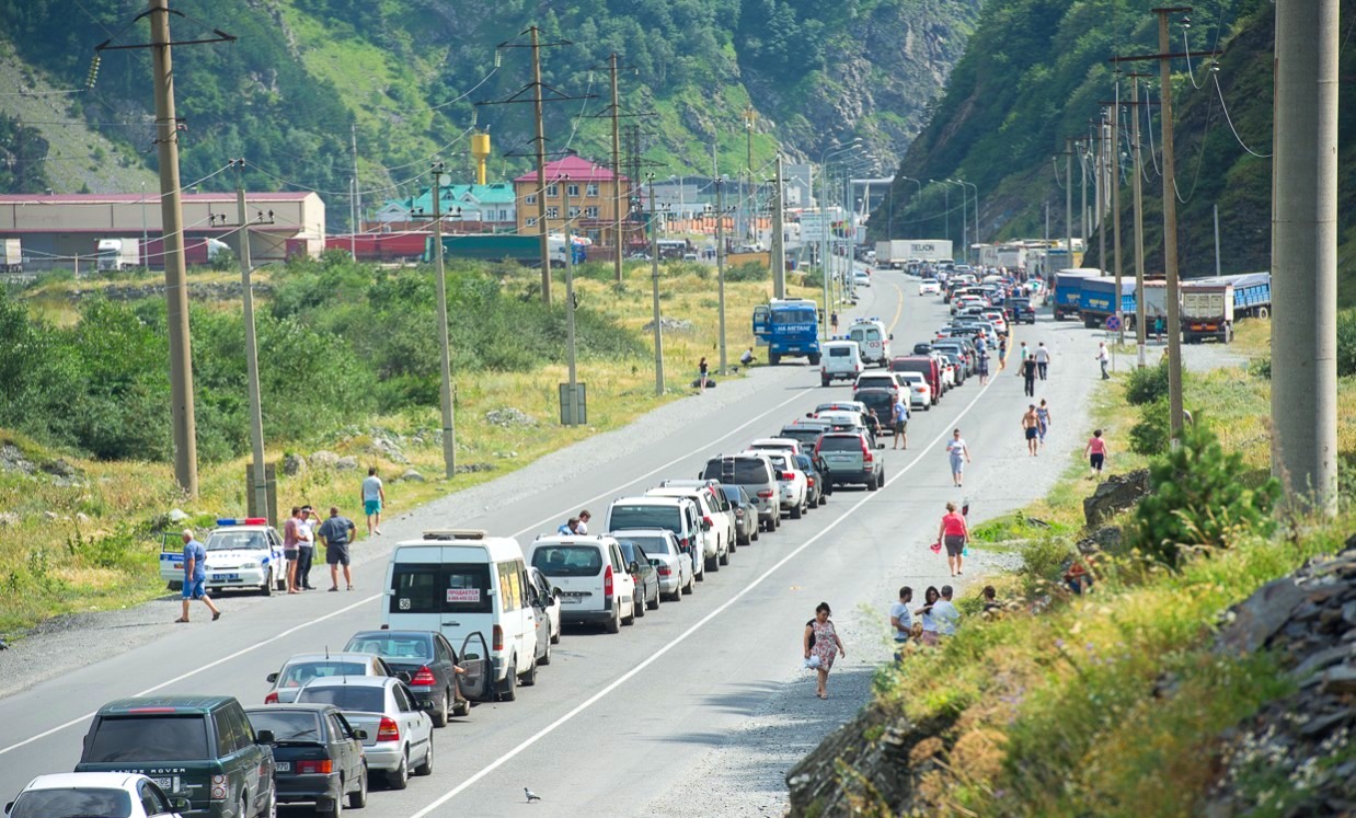 В период летних пиковых нагрузок очередь перед многосторонним автомобильным пунктом пропуска Верхний Ларс достигает 5–6 километров, а срок ожидания составляет более 12 часов.