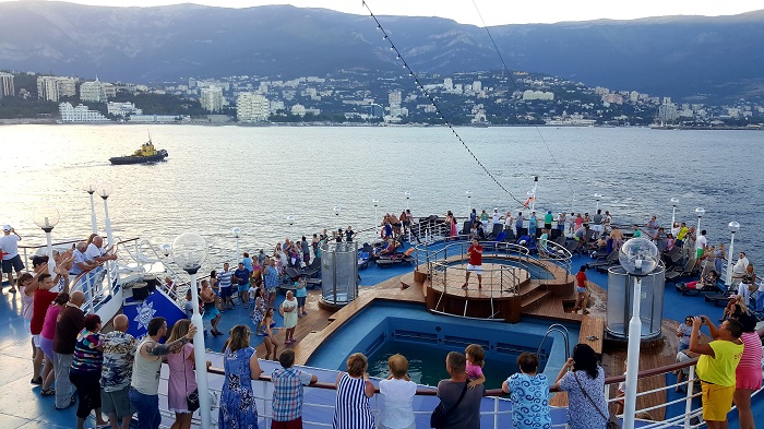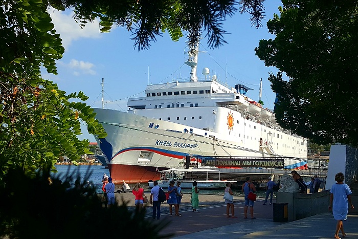 После пересменки пассажиров он ушёл на новый круг «черноморской кругосветки»: в воскресенье вечером — из Сочи в Новороссийск, далее — на два полных дня в Ялту, затем — целый день в Севастополе. И только в пятницу утром «Князь Владимир» берёт курс вновь на Сочи.