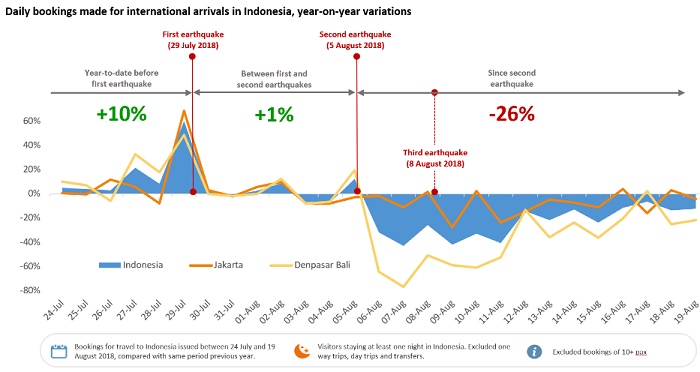 Бронирования из Австралии, второго по важности рынка для Индонезии, выросли на 28% до второго землетрясения, но с тех пор упали на 19%.