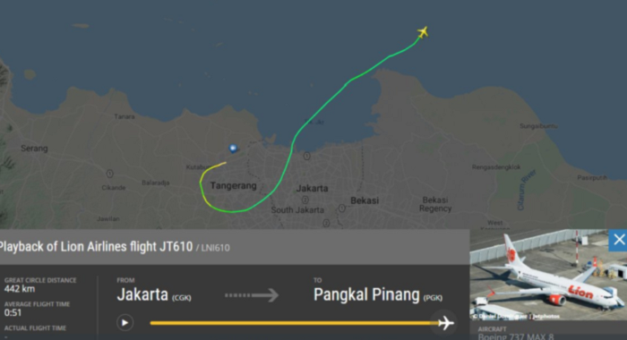 Boeing 737 MAX индонезийской авиакомпании Lion Air потерпел крушение сегодня утром у берегов Западной Явы. Самолет выполнял рейс из Джакарты на остров Суматра, в 6:20 (2:20 мск) он вылетел из столицы Индонезии и пропал с радаров в 6:33 (2:33 мск). Как сообщили порталу TRN в Министерстве туризма страны, российских граждан на борту лайнера не было.