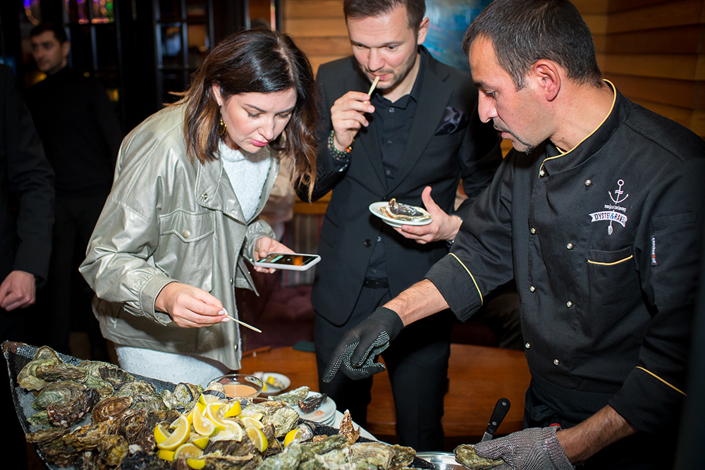 На вечеринке собрались яркие представите турбизнеса. Гостей порадовали не только яркой развлекательной программой, но и изысканными угощениями, такими, например, как устричный бар.