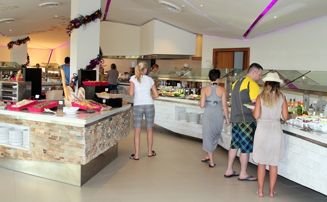 Всего в отеле 8 баров и 11 ресторанов, – большинство из них соединяет между собой искусственный пруд, в котором живут черепахи.